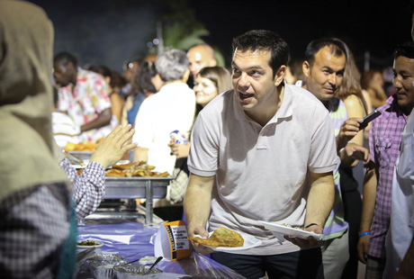 Syriza leader Alexis Tsipras serves food at an annual anti-racist festival organised by 250 civic organisations. Photo Aggelos Kalodoukas.