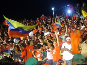 Chavez supporters celebrate the president’s re-election on October 7 outside the Miraflores presidential palace in Caracas. Photo by Tamara Pearson/Venezuelanalysis.com