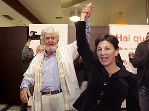 Xose Manuel Beiras, left, celebrates the success of the Galician Left Alternative in the October 22 poll.