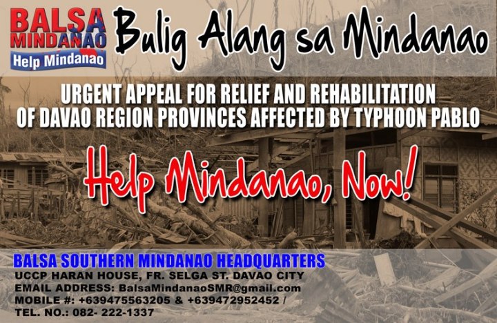 BALSA MINDANAO SMR UPDATED URGENT APPEAL FOR THE VICTIMS OF TYPHOON PABLO