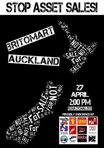Time for the Government to listen to the majority of New Zealand. a National Day of Action organised by the Aotearoa is Not For Sale Coalition to stop Asset Sales. Now endorsed by the Labour party, NZ First, the Mana Movement, CTU, Unions Auckland, Unite, NZNO, PSA, SFWU, FIRST union, MUNZ, , ANFS, Occupy, Auckland Action Against Poverty, the Tamaki Housing Group and Socialist Aotearoa.