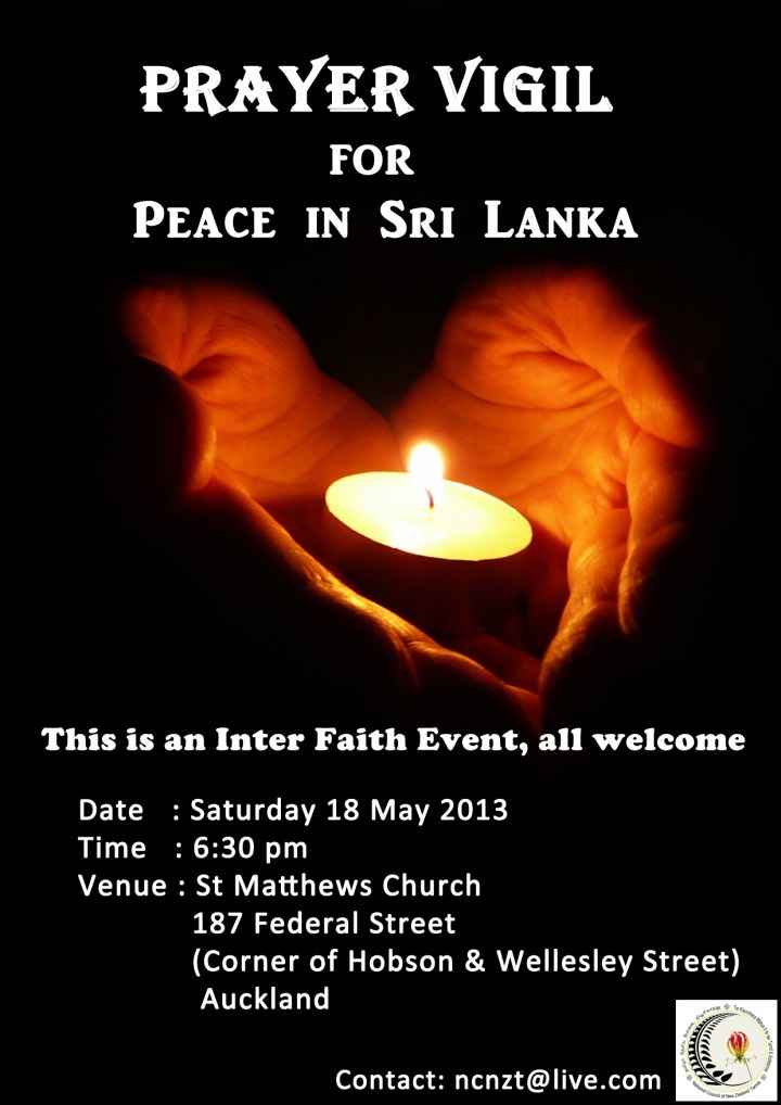 The interfaith Prayer Vigil for Peace in Sri Lanka will take place: