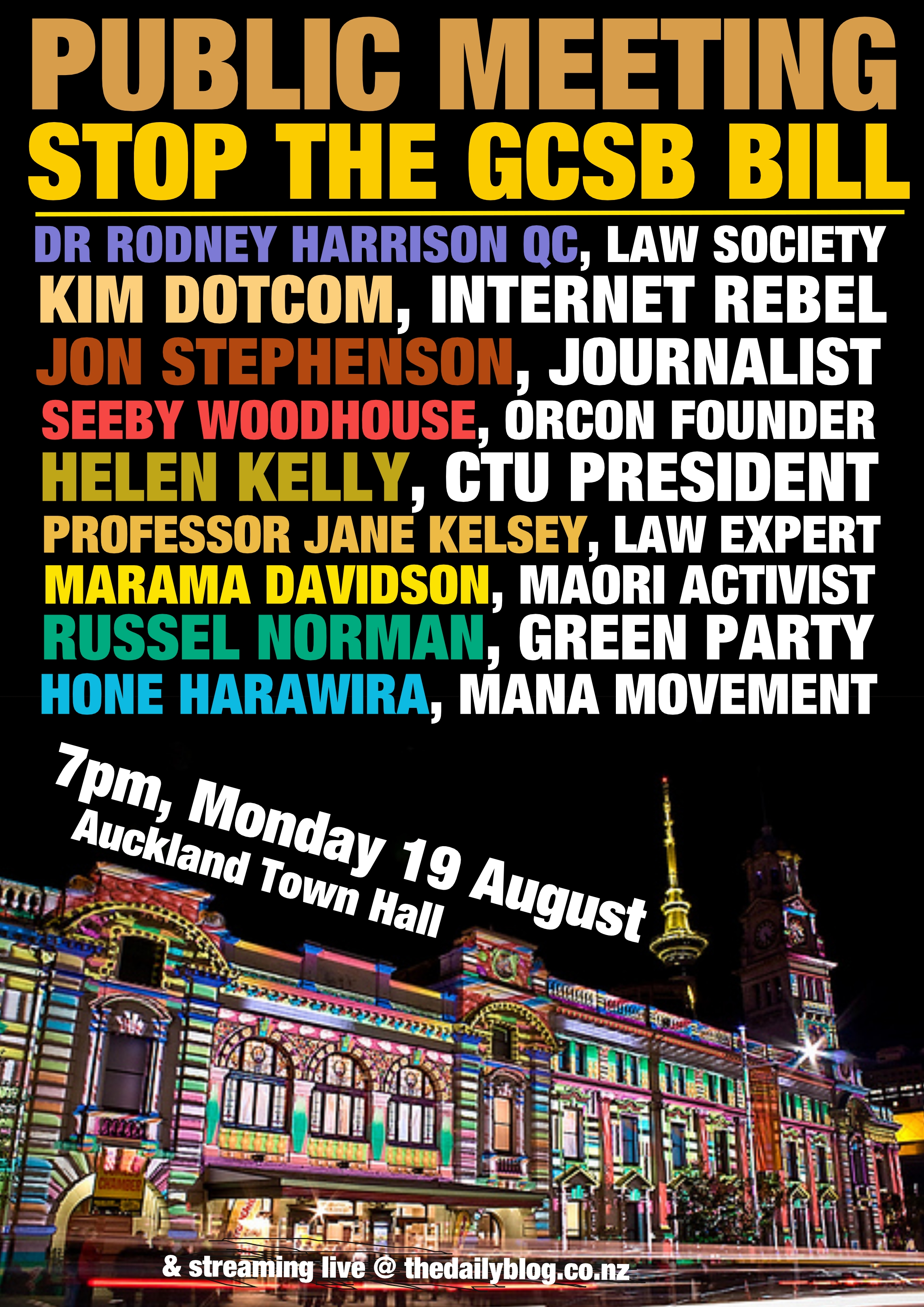 It’s more important than ever that we hold the Prime Minister to account at the URGENT PUBLIC MEETING TO STOP THE GCSB BILL – AUCKLAND TOWN HALL THIS MONDAY 19TH AUGUST AT 7PM.