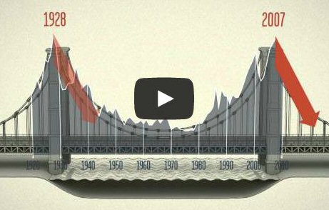 Graph the top 1 percent share of America’s income over the last 100 years, former labor secretary Robert Reich marvels in the engaging new feature film Inequality for All, and you get a veritable suspension bridge: an almost identical hyperconcentration of income in the 1920s and then again today. Inequality for All will debut in theaters September 27. Just released: the film’s official trailer.
