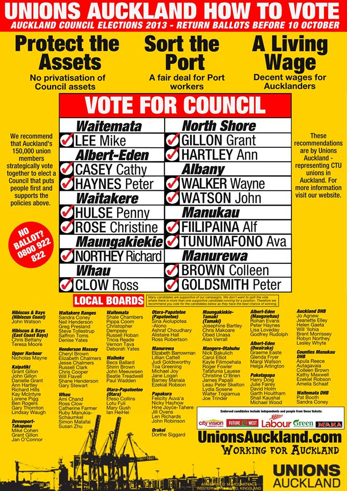 UNIONS AUCKLAND ON HOW TO VOTE