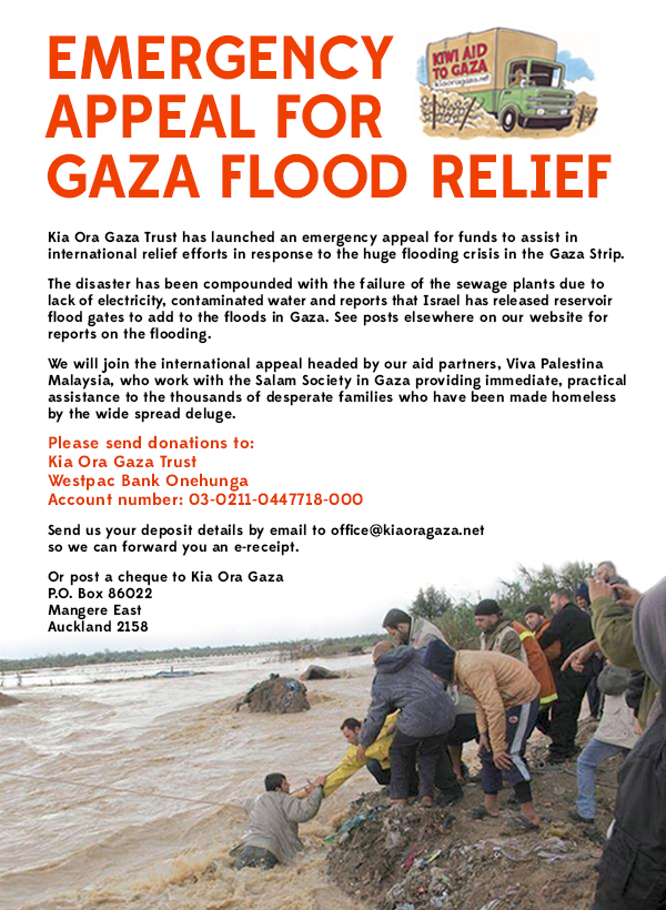 Please forward your donation asap to: KIA ORA GAZA TRUST, Account 03-0211-0447718-000, Westpac Onehunga