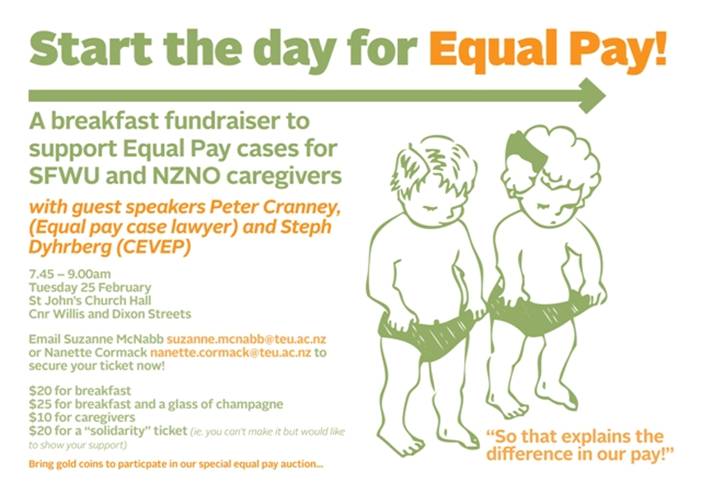 Start the Day for Equal Pay: A breakfast fundraiser to support. Email Suzanne McNabb suzanne.mcnabb or Nanette Cormack nanette.cormack to secure your ticket now. $20 for breakfast; $25 for breakfast and a glass of champagne; $10 for caregivers; $20 for a “solidarity” ticket if you can’t make it but want to show your support.