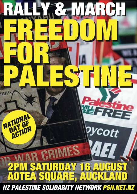 NATIONWIDE DAY OF ACTION FOR PALESTINE THIS SATURDAY – New Zealanders making a strong stand for peace in Gaza – please bring your friends, family, workmates etc. Rain or shine.