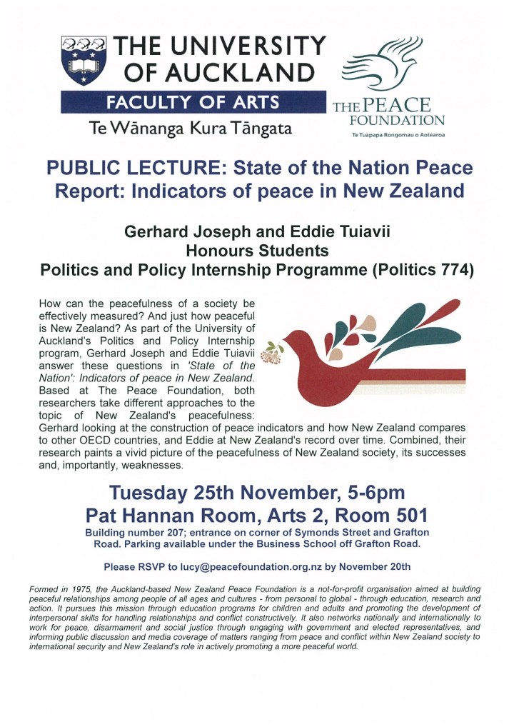 Tuesday, November 25, 5pm, Pat Hannan Rm, Arts 2, Rm 501, Bldg 207, cnre Granfton Td and Symonds St, Auckland