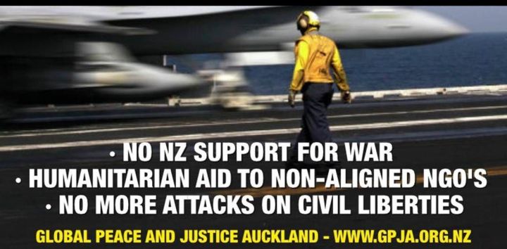 Open letter on military deployment to Iraq: if you would like to add your name to the list of signatories to the Open Letter, please email Peace Movement Aotearoapma with the subject heading ‘Sign open letter on Iraq’, and provide your name (title if relevant), occupation or position and organisation, or your name (title if relevant) and town or city. Names are being added on the Open Letter web page at