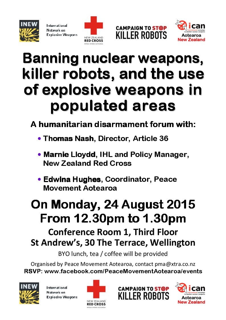 Banning nuclear weapons, killer robots, and the use of explosive weapons in populated areas. A humanitarian disarmament forum with: