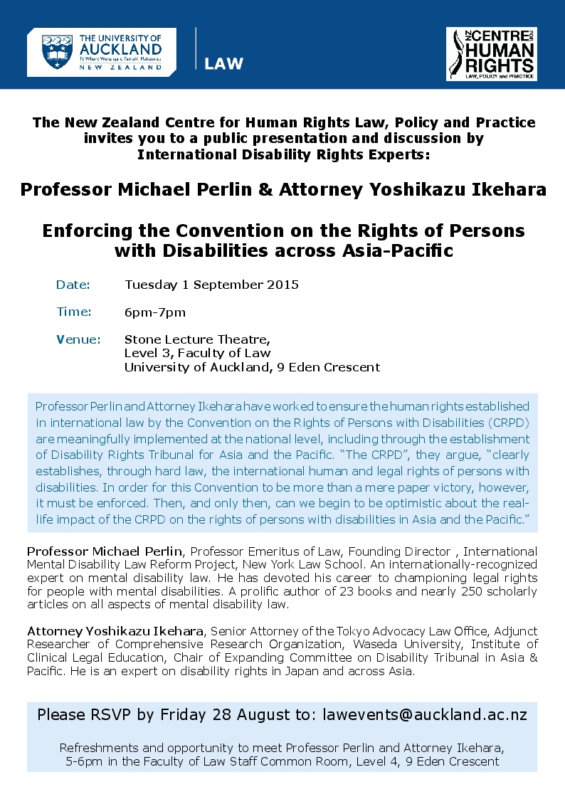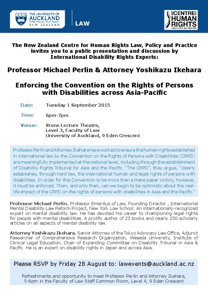 Tuesday, September 1, 6-7pm, Stone Lecture Theatre, Level 3, Faculty of Law, Auckland University