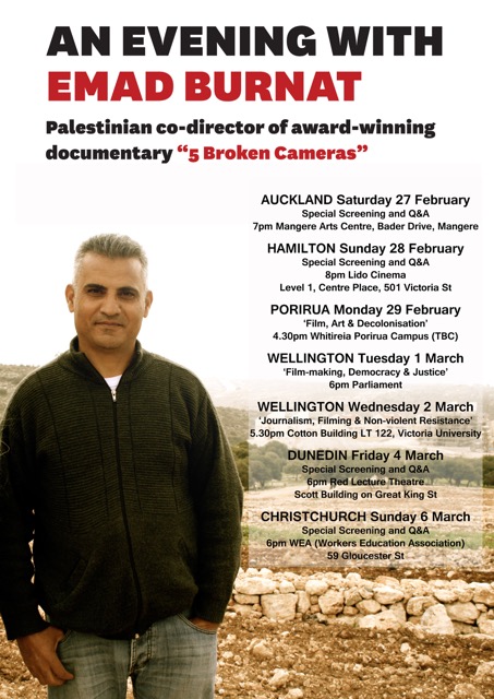 Soon after the NZ tour by Palestinian filmmaker Emad Burnat (see poster of events below) we will be hosting the 2016 Conference on Palestine in the Auckland Town Hall concert chamber on Sun 3 April (please note this correct date) with high-profile Palestinian keynote speakers: Ali Abunimah & Ramzy Baroud. Ali & Ramzy will also speak in Wellington, Chch & Dunedin.