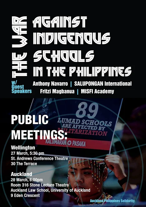 In March Auckland Philippines Solidarity (APS), will be hosting a speaking tour of two Lumad (Indigenous peoples) educators from Mindanao, Southern Philippines.