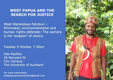 Oceania Interrupted and West Papua Action Auckland invite you to two special events with Wensislaus (Wensi) Fatubun who is visiting from West Papua. Wensi is a film maker, environmentalist, and human rights activist. The camera is his ‘weapon of choice’. He comes with a very timely message about the destructive impact of the palm oil conglomerates- as recent Greenpeace reporting reveals that West Papua’s forests are under renewed threat.