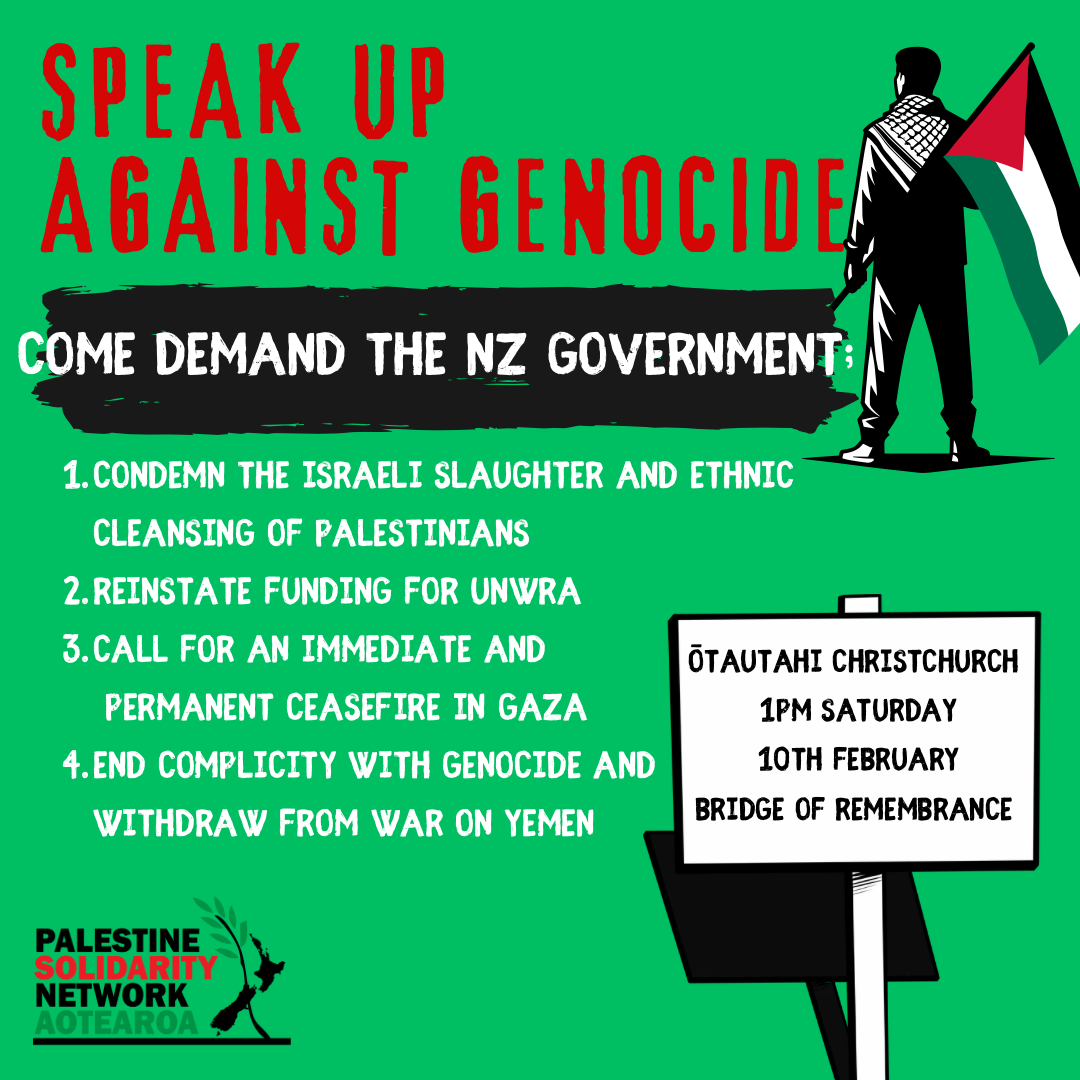 New Zealanders are once more gathering all over the country to protest the genocide and speak up while our gutless government looks the other way.