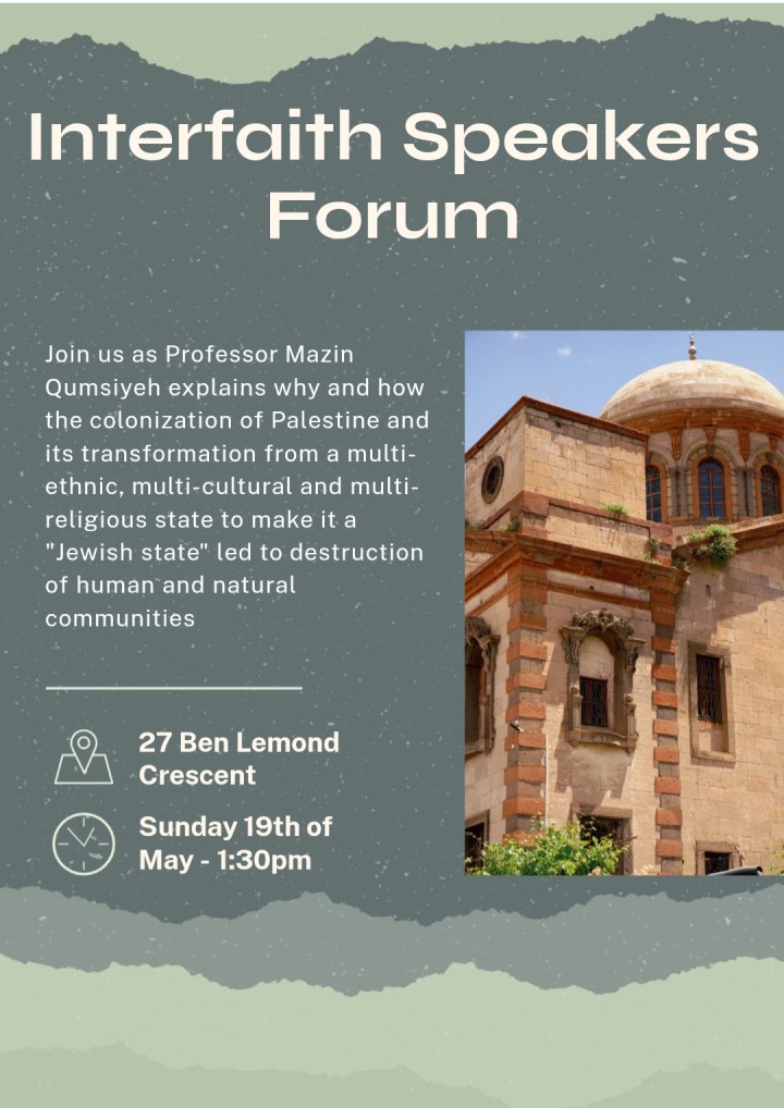 9.00am Understanding the struggle against colonisation in Palestine and its links to anti-colonial struggles in Aotearoa, Australia, West Papua, Western Sahara etc. A panel discussion led by Palestinians.