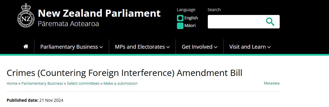 In the draft “Crimes (Countering Foreign Interference) Amendment Bill” it is proposed to criminalise improper conduct for or on behalf of a foreign power.